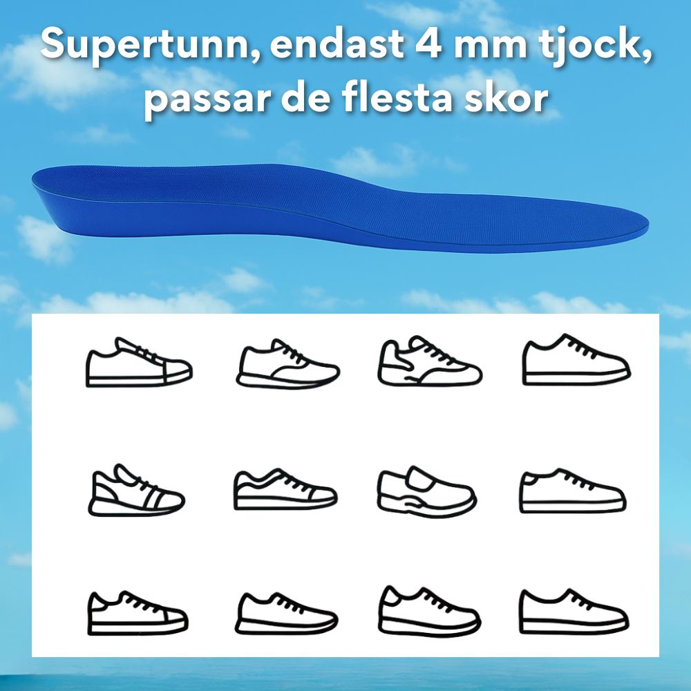 Ultratunn design: Endast 4 mm tjock för att passa sömlöst i de flesta sneakers, skolskor och vardagsskor.